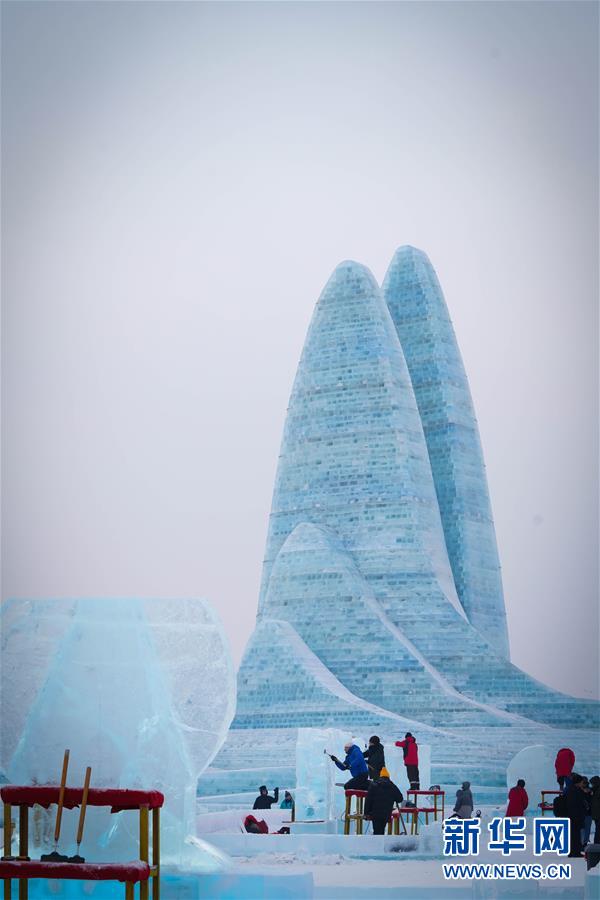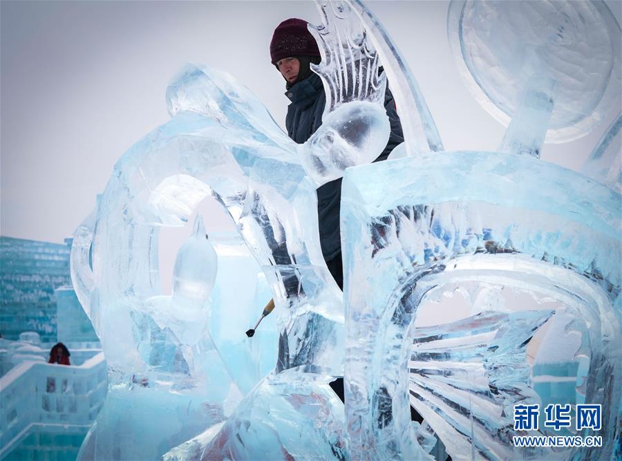 冰雕師在哈爾濱冰雪大世界內(nèi)雕刻出主題各異的冰雕作品(1月8日攝)。新華社記者王松攝
