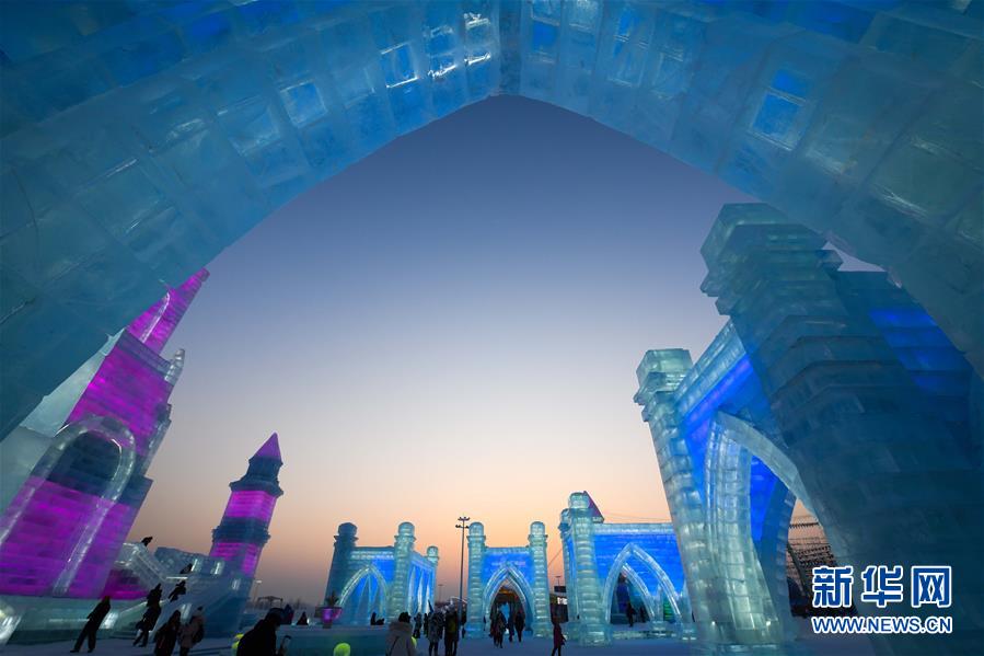 這是哈爾濱冰雪大世界園區(qū)中的景觀(1月5日攝)。新華社記者王松攝