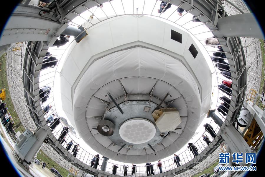 1月11日,專家學(xué)者對(duì)“中國(guó)天眼”進(jìn)行考察(檢修期間拍攝)。新華社記者歐東衢攝