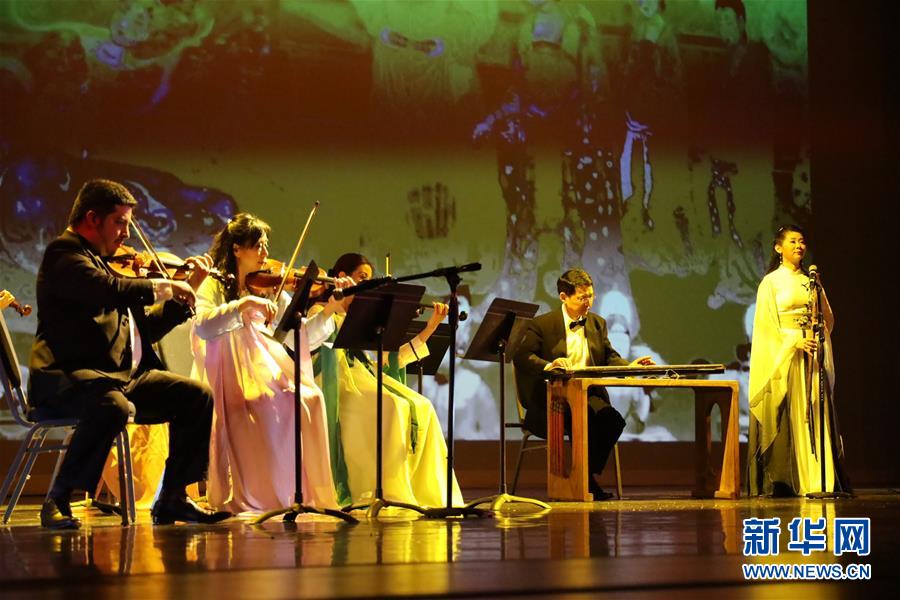 1月11日,在美國休斯敦舉辦的“擁抱春天”晚會上,藝術(shù)家演奏大唐樂舞《清平樂》。新華社記者 劉立偉 攝