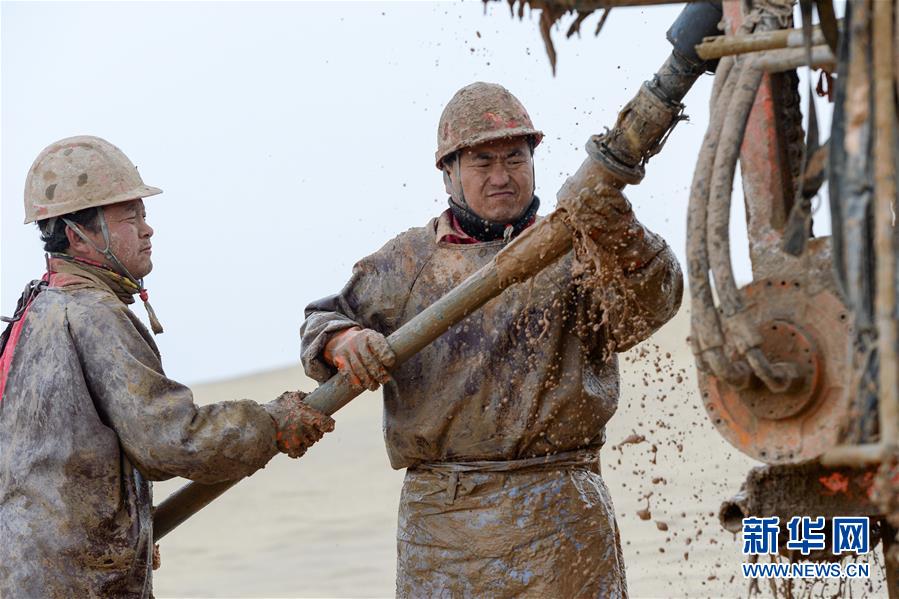 1月13日,鉆井工在連接鉆桿。地球物理勘探是油氣開發(fā)的第一步,相當于給地球做CT。物探工人按照嚴格的測線部署,在相應(yīng)位置鉆井,然后實施地震,采集地震波數(shù)據(jù)??蒲腥藛T通過數(shù)據(jù)組成的“CT片”,就能夠清晰地“看”到地下的地質(zhì)結(jié)構(gòu),判斷哪里埋藏有石油或者天然氣。2019年10月,東方地球物理勘探有限責任公司塔里木物探處2113隊進入新疆塔克拉瑪干沙漠腹地,開始中古14-21、塔中2兩個區(qū)塊的三維地震勘探。近2000名物探工人將在1000平方公里的范圍內(nèi)一直工作到2020年4月,這也意味著他們將在塔克拉瑪干沙漠腹地連續(xù)度過第14個除夕夜。蘊藏著豐富石油天然氣資源的新疆塔克拉瑪干沙漠有“死亡之海”之稱,氣候干燥,年降水量在50毫米以下,冬季地表最低溫度超過零下30攝氏度,是世界油氣勘探難度最大的地區(qū)之一。為避開風季,物探工人每年9、10月份進入沙漠,一直工作到來年4月,夜以繼日與黃沙、嚴寒為伴,用辛勤的汗水,為祖國找油找氣。新華社記者丁磊攝