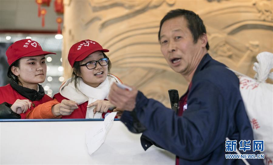 1月14日,在西安北站候車(chē)大廳,青年志愿者在為旅客服務(wù)。路再遠(yuǎn)、再艱辛,也擋不住回家的腳步。在西安北站的每一個(gè)角落,處處充滿溫情和歸鄉(xiāng)的盼望。連日來(lái),西安北站日均發(fā)送旅客12.1萬(wàn)人次,一列列春運(yùn)的列車(chē),載著中國(guó)人的鄉(xiāng)愁,駛向遠(yuǎn)方。新華社記者陶明攝