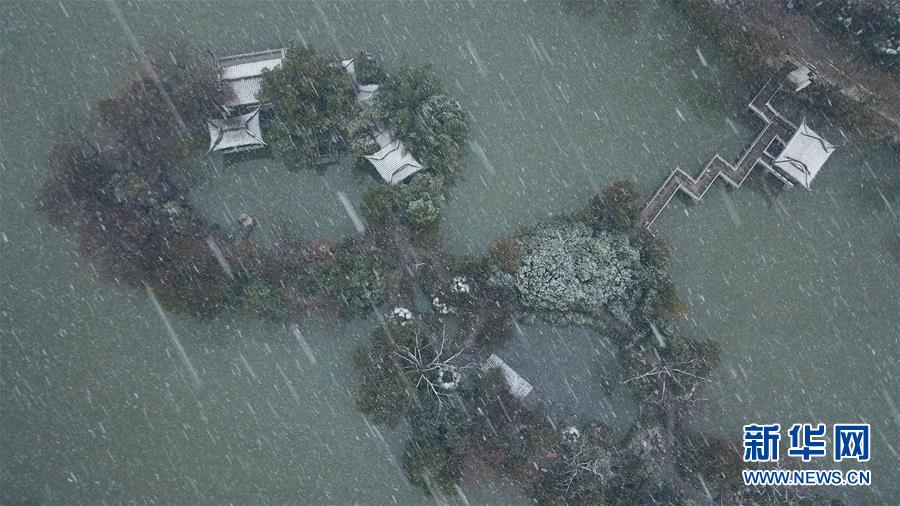 這是1月15日拍攝的合肥市包公園雪景(無(wú)人機(jī)照片)。 當(dāng)日,安徽省合肥市迎來(lái)降雪天氣。雪中的合肥市包公園景色別致。 新華社記者 張端 攝