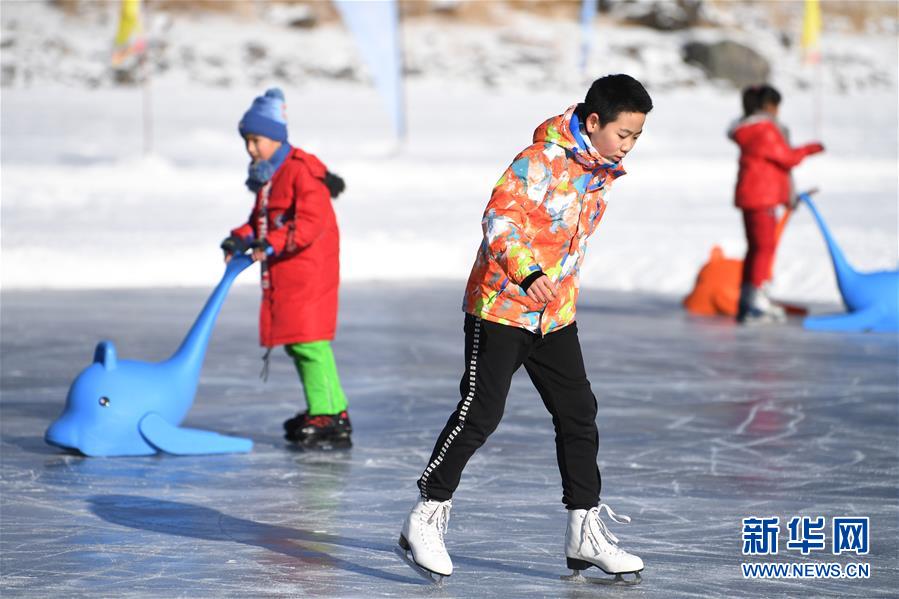 1月18日,游客在新疆天池景區(qū)滑冰。新華社記者 沙達提 攝