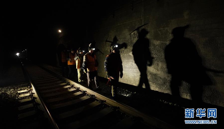 1月9日,在加格達(dá)奇工務(wù)段西羅奇嶺二號(hào)隧道,西羅奇維修工隊(duì)工作人員進(jìn)行隧道除冰作業(yè)后準(zhǔn)備返回工隊(duì)住所。新華社記者王毓國(guó)攝