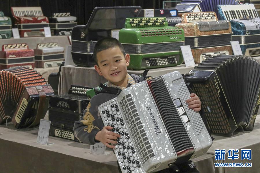 塔城市手風琴博物館里展出的產自俄羅斯的手風琴(1月21日攝)。新華社記者 趙戈 攝