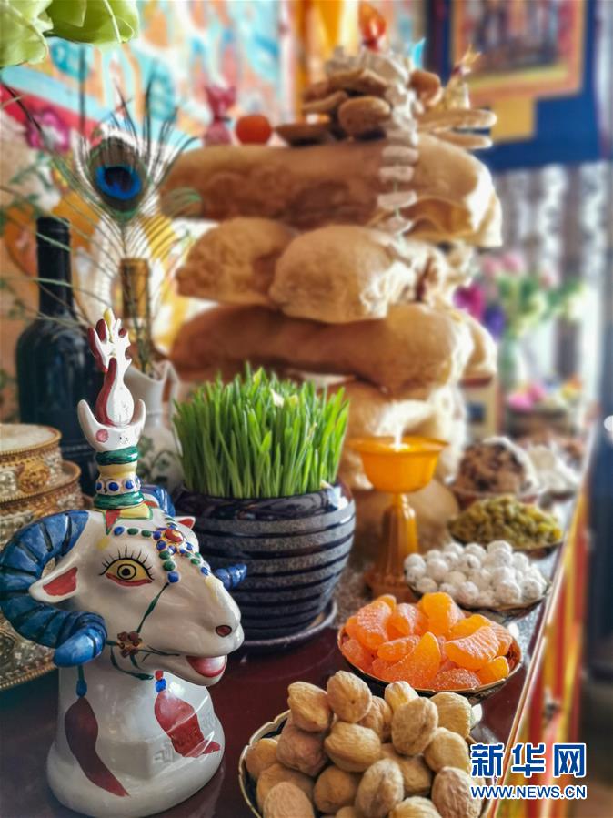 擺放在西藏群眾家中的新年供品(2月24日攝)。 新華社記者 普布扎西 攝