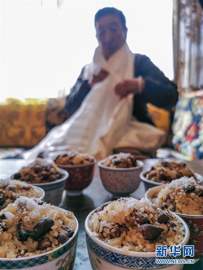拉薩市民在家中品嘗藏族傳統(tǒng)新年食品(2月24日攝)。 新華社記者 普布扎西 攝