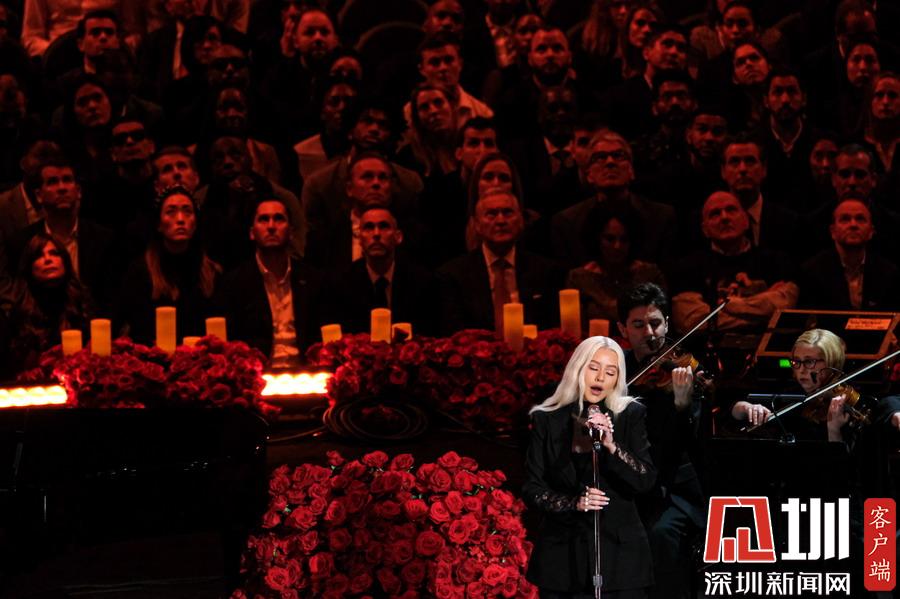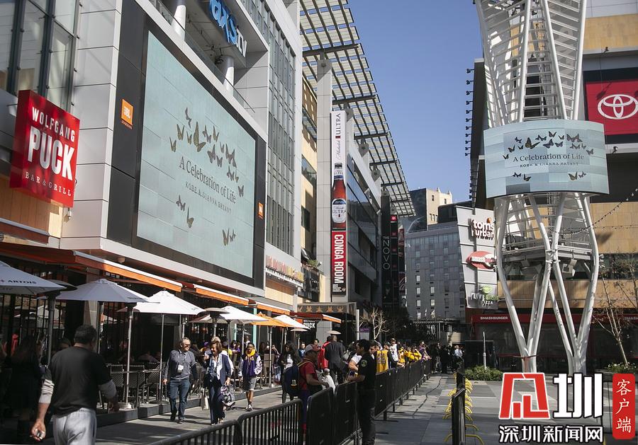 美國洛杉磯,NBA巨星科比-布萊恩特與女兒吉安娜追思會(huì)于洛杉磯湖人主場斯臺(tái)普斯中心舉行。