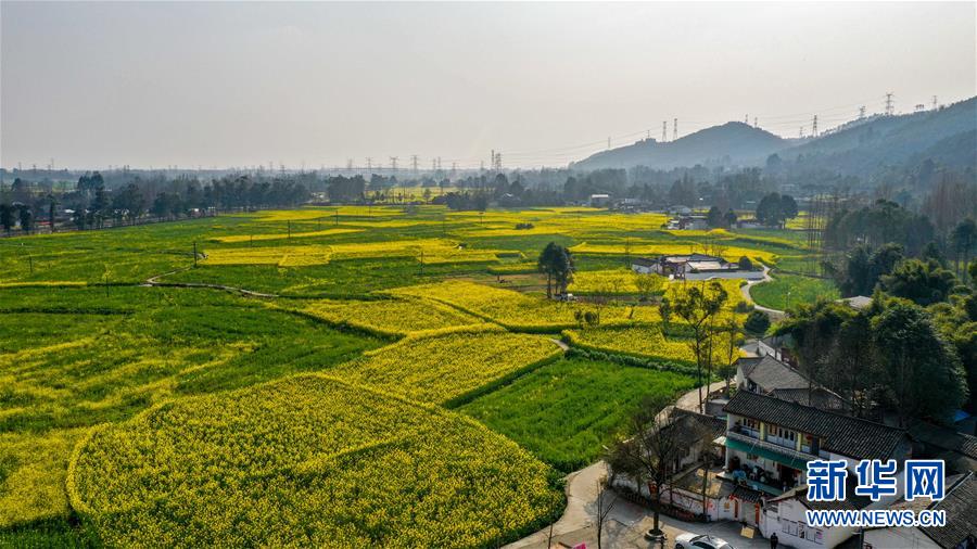 2月25日在四川省崇州市農(nóng)業(yè)產(chǎn)業(yè)功能區(qū)拍攝的油菜花田(無人機照片)。 初春時節(jié),正值農(nóng)時。成都平原西部的大邑、崇州等縣市油菜長勢良好,一片生機盎然的景象。 新華社記者 王曦 攝