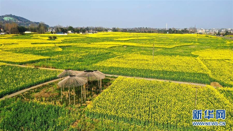 2月25日在四川省崇州市拍攝的油菜花田(無人機照片)。 新華社記者 王曦 攝