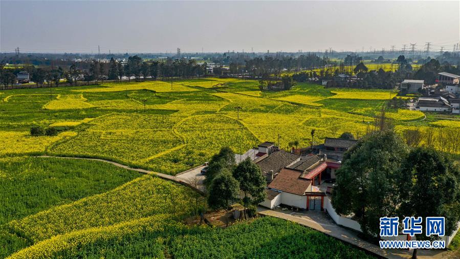 2月25日在四川省崇州市拍攝的油菜花田(無人機(jī)照片)。新華社記者王曦攝