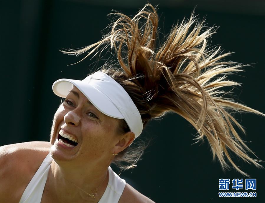 圖為2019年7月2日,莎拉波娃在溫布爾登網(wǎng)球公開賽女單第一輪比賽中對(duì)陣法國(guó)選手帕爾芒捷。比賽進(jìn)行至第三盤時(shí),莎拉波娃退賽,止步首輪。 新華社記者韓巖攝