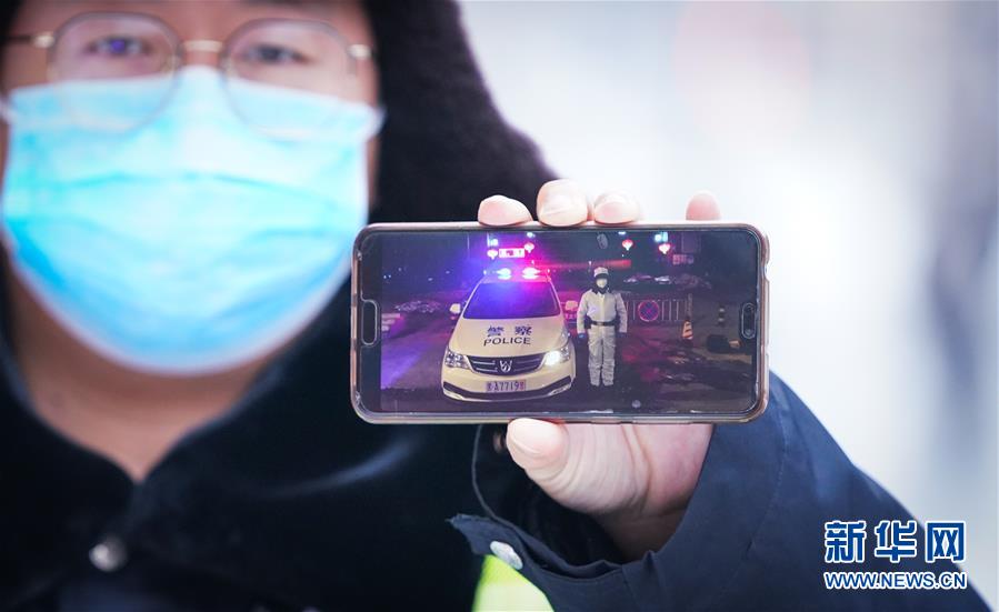 李可心展示手機里父親李論的工作照(3月1日攝)。父親李論是一名民警,負責對轄區(qū)內(nèi)疑似感染人員居住小區(qū)進行封控、排查工作。新華社記者王松攝