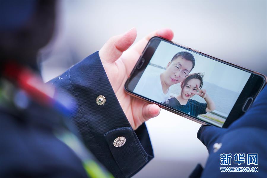 李可心的手機(jī)里存有自己與未婚妻去年外出旅游時(shí)的合影(3月1日攝)。 新華社記者王松攝