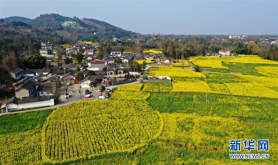 2月25日在四川省崇州市拍攝的油菜花田(無人機(jī)照片)。新華社記者王曦?cái)z