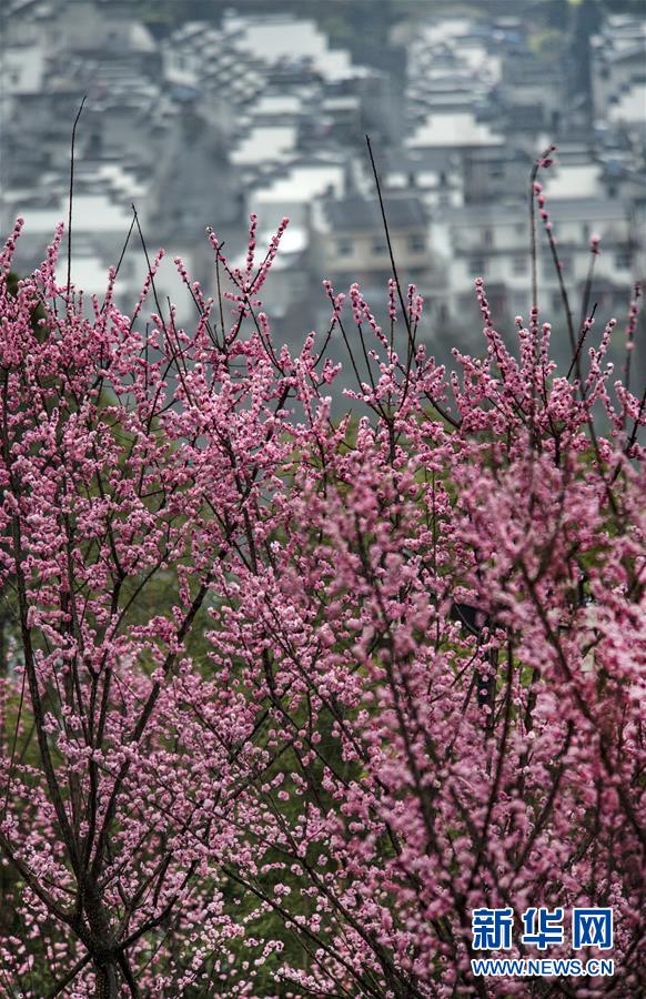 3月2日,盛開的春梅映襯著平利縣長安鎮(zhèn)高峰村徽派農(nóng)舍。新華社記者陶明攝