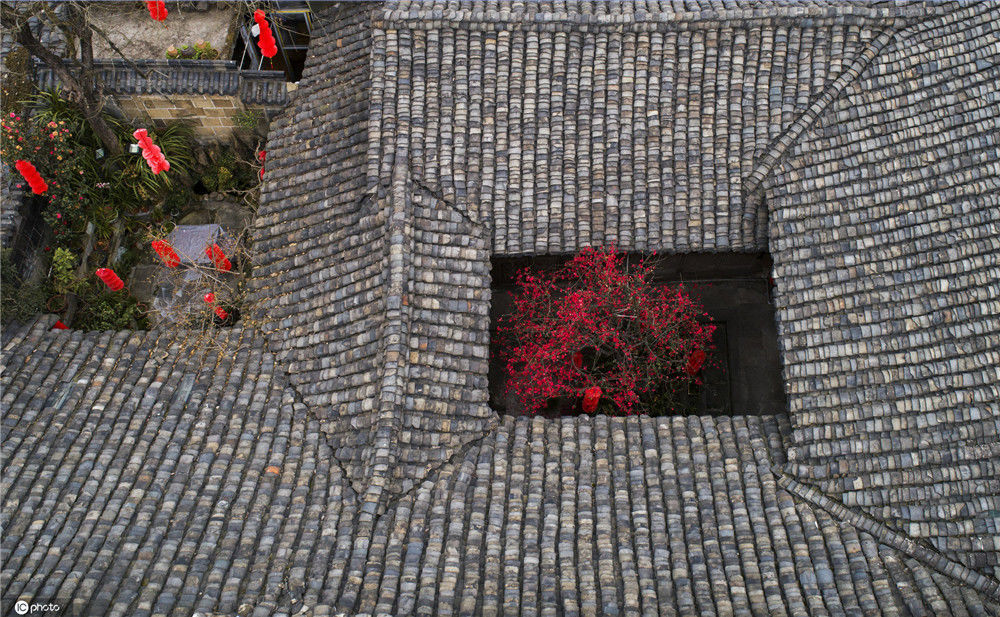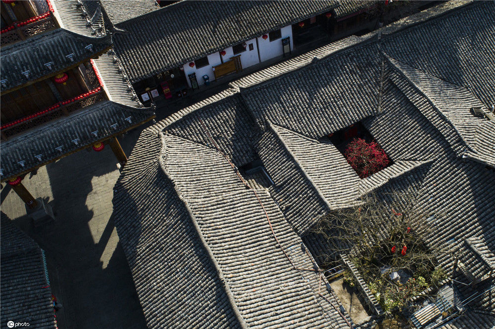 2020年2月14日,初春時節(jié),陽光明媚。四川閬中古城地標(biāo)中天樓旁的張家小院天井中的海棠樹繁花似錦。四川省重點(diǎn)文物保護(hù)單位張家小院這道“火熱”的風(fēng)景,是當(dāng)?shù)睾芏嗳说南蛲屯獾赜慰碗y忘的記憶。王玉貴/IC photo