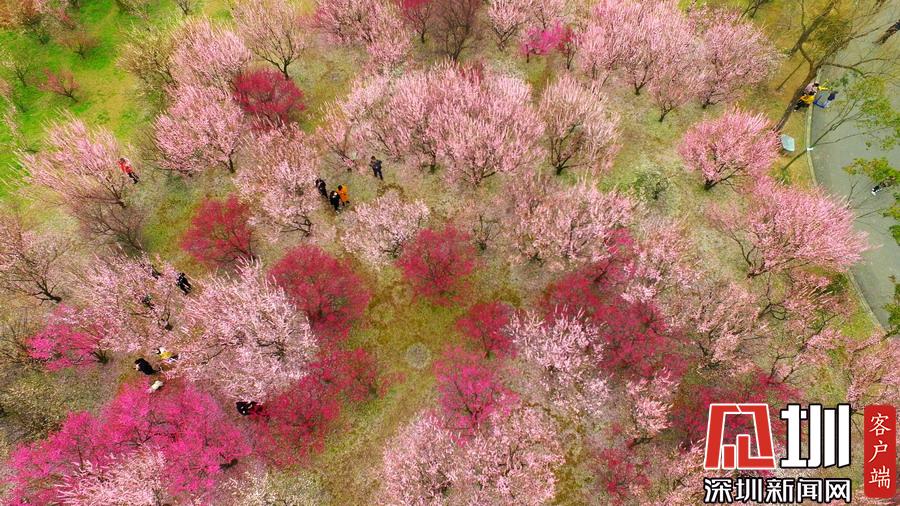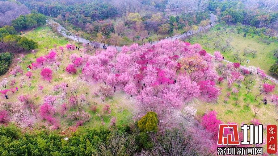 2020年2月26日,春暖花開,春意盎然,江蘇省揚(yáng)州市蜀岡西峰生態(tài)公園內(nèi)梅花競相綻放,五顏六色的梅花樹為古城大地披上七彩春裝,美不勝收,吸引了市民和游客前來踏春賞景。