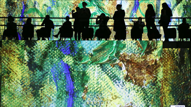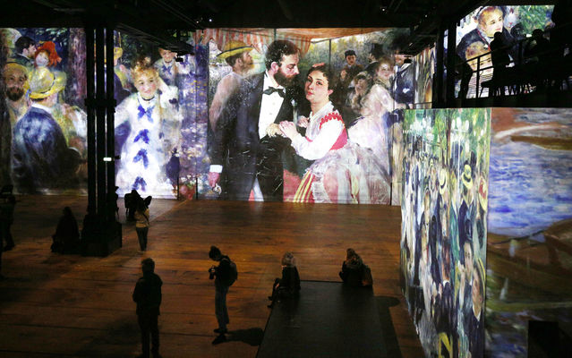 2月27日,在法國巴黎,人們?cè)凇稄哪?、雷諾阿到夏加爾:地中海之旅》光影藝術(shù)沉浸展的媒體預(yù)展上參觀?!稄哪巍⒗字Z阿到夏加爾:地中海之旅》光影藝術(shù)沉浸展將于2020年2月28日至2021年1月3日在法國巴黎舉行。展覽利用數(shù)碼投影技術(shù)為觀眾展示包括莫奈、雷諾阿、夏加爾等在內(nèi)的20位藝術(shù)大師關(guān)于地中海題材的代表作,讓觀眾沉浸在從印象派到現(xiàn)代主義畫作的視聽享受中。新華社記者高靜攝