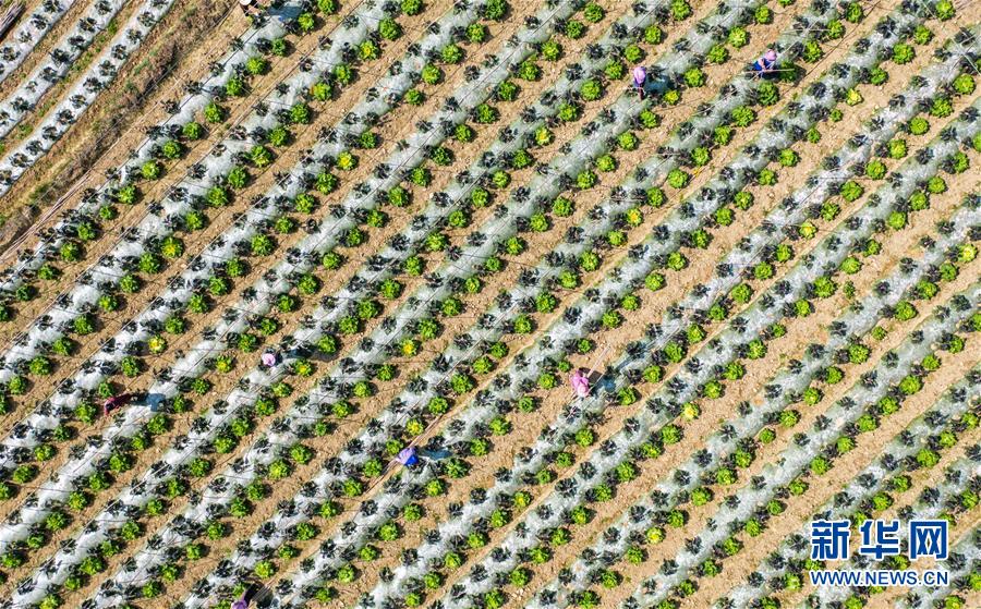 3月8日,貴州省羅甸縣龍坪鎮(zhèn)羅化村村民在田地里勞作(無人機(jī)照片)。
