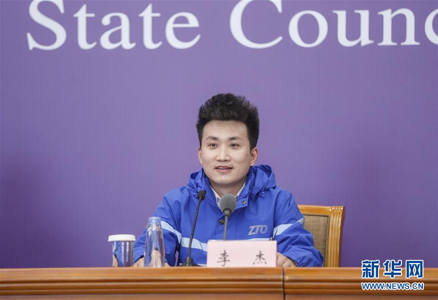 3月9日,中通快遞北京廠洼路網(wǎng)點快遞員李杰在北京出席國務院聯(lián)防聯(lián)控機制新聞發(fā)布會。