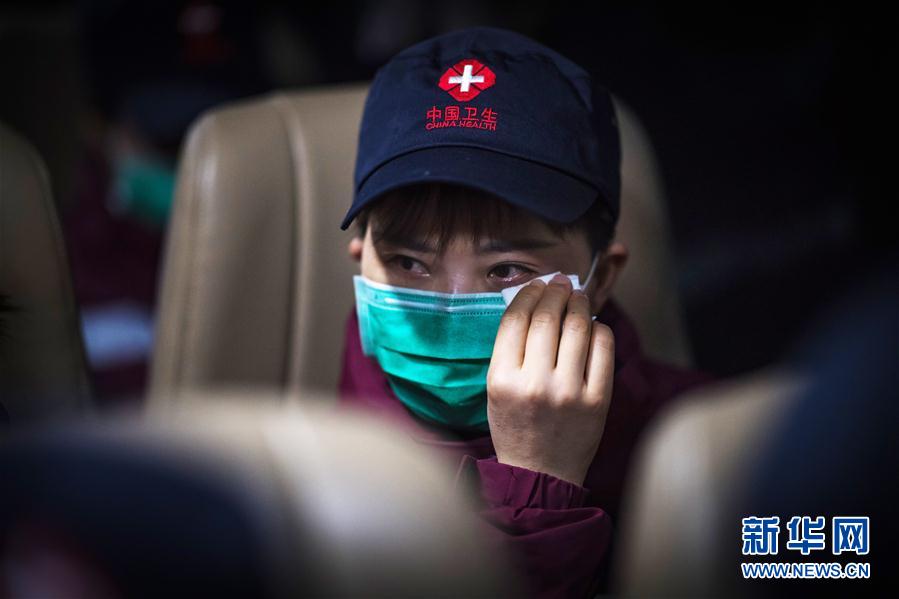 3月17日,陜西國(guó)家緊急醫(yī)學(xué)救援隊(duì)隊(duì)員閔渝婷在返程途中擦拭眼淚。新華社記者肖藝九攝