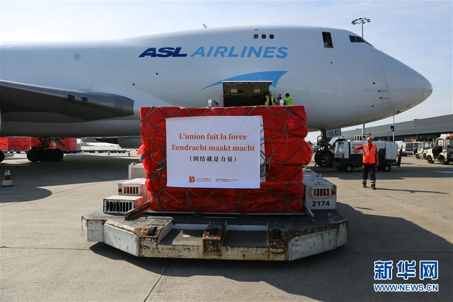 來自中國的30萬只口罩當(dāng)?shù)貢r(shí)間16日中午運(yùn)抵比利時(shí)列日機(jī)場。 新華社記者 張鋮 攝