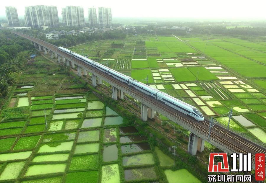 2020年3月17日,海南環(huán)島鐵路一列動(dòng)車從春光明媚的瓊海城區(qū)經(jīng)過(guò)。