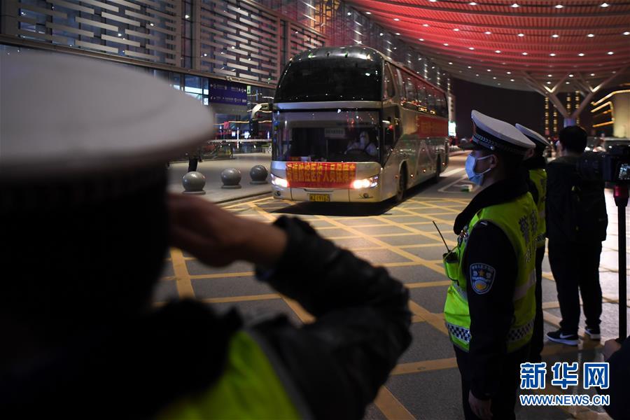 3月17日,抵達(dá)湖南長(zhǎng)沙南站的醫(yī)療隊(duì)隊(duì)員乘坐大巴離開(kāi)。新華社記者薛宇舸攝