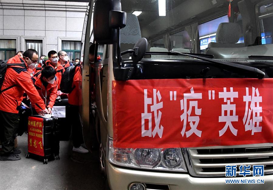 3月17日,醫(yī)療隊隊員在河南鄭州東站乘坐大巴車。新華社記者李安攝