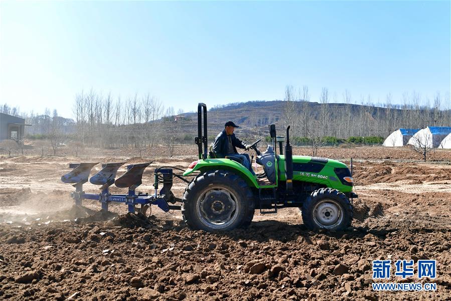 3月18日,在中國鐵路太原局集團(tuán)有限公司新創(chuàng)云竹生態(tài)農(nóng)業(yè)園,農(nóng)民在用農(nóng)機(jī)犁地。