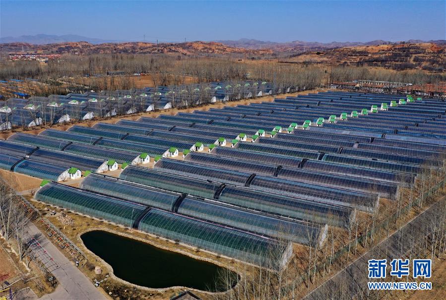 這是3月18日拍攝的中國(guó)鐵路太原局集團(tuán)有限公司新創(chuàng)云竹生態(tài)農(nóng)業(yè)園內(nèi)的蔬菜大棚(無(wú)人機(jī)照片)。 新華社記者 曹陽(yáng) 攝