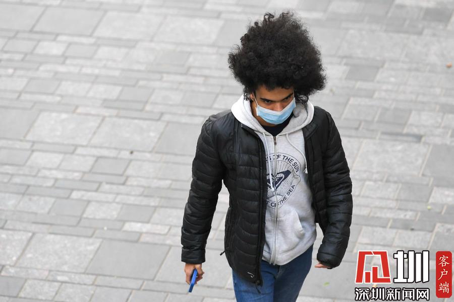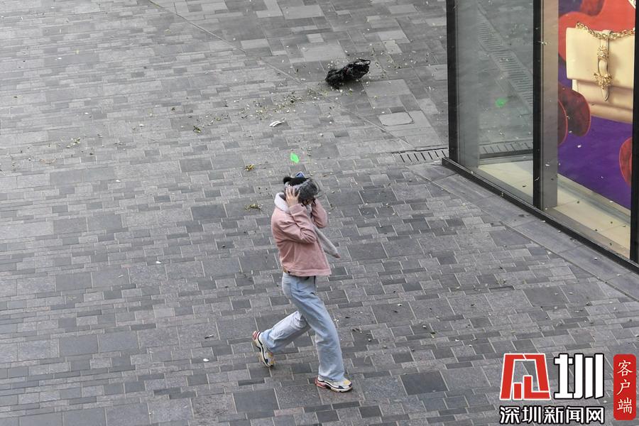 北京八九級大風進城,路人頭發(fā)被吹亂。