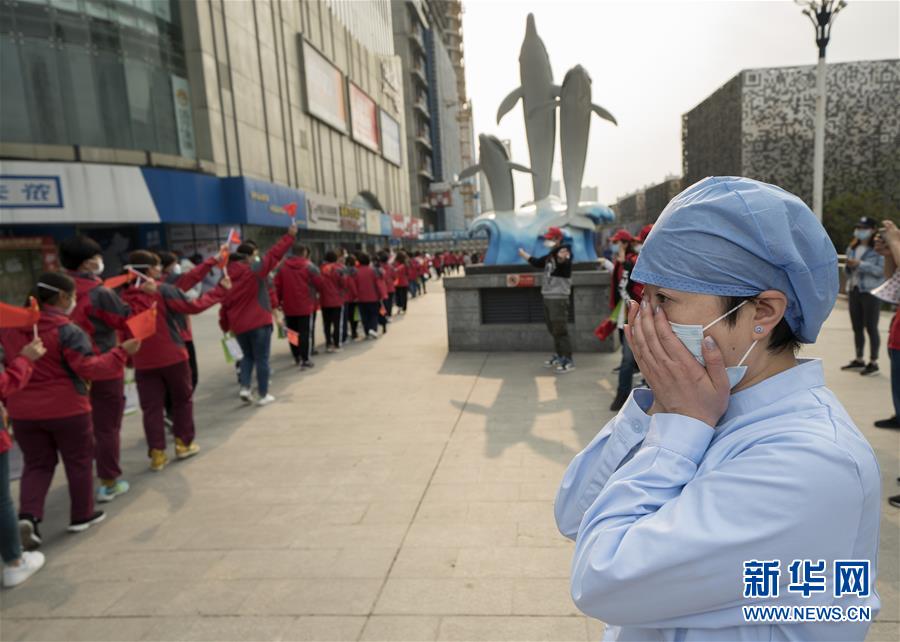 3月21日,武漢市第一醫(yī)院的護士長杜沛在送別天津市醫(yī)療隊隊員時掩面而泣。杜沛是負(fù)責(zé)與天津市醫(yī)療隊對接的護士長。
