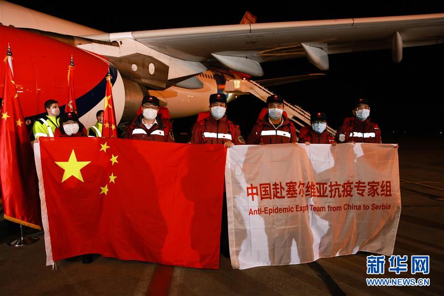 3月21日,在塞爾維亞首都貝爾格萊德,中國(guó)援助塞爾維亞抗疫醫(yī)療專家組成員合影。 中國(guó)援助塞爾維亞抗疫醫(yī)療專家組一行6人21日晚乘專機(jī)抵達(dá)塞首都貝爾格萊德,由中國(guó)政府捐贈(zèng)的一批醫(yī)療物資同機(jī)抵達(dá)。 新華社記者 石中玉 攝