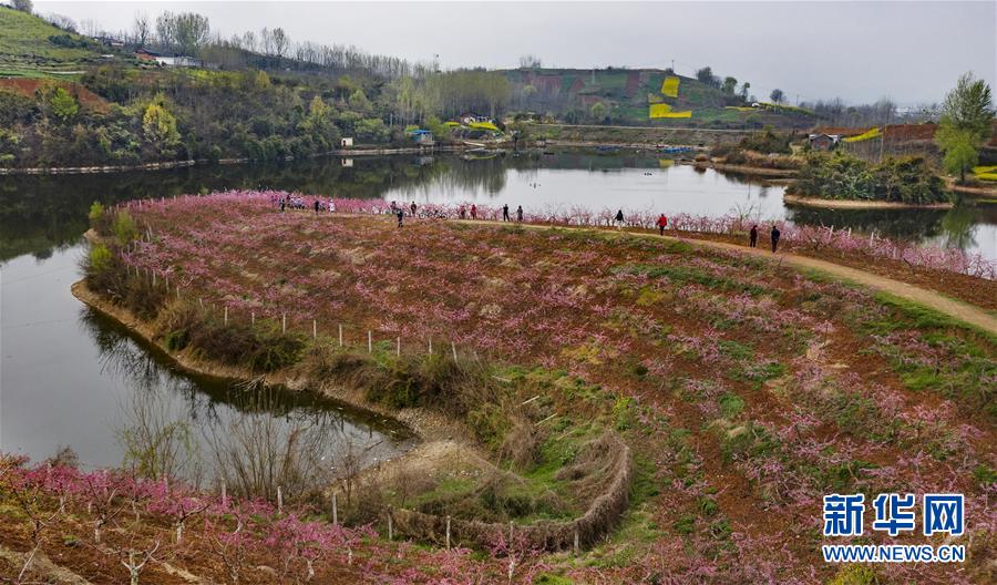 3月22日,龍亭鎮(zhèn)柳山村村民(前)在桃園中春耕。陽春三月,陜西省漢中市洋縣龍亭鎮(zhèn)柳山村,1300畝桃園的花朵綻放。新華社記者陶明攝