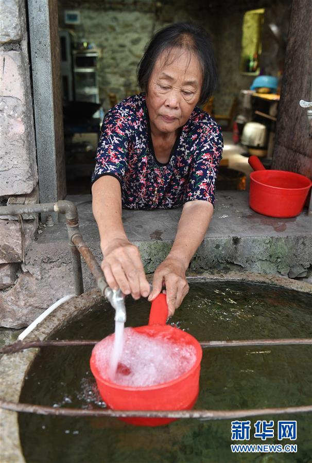 在廣西都安瑤族自治縣龍灣鄉(xiāng)琴棋村琴嶺屯,村民在接從水柜里引來的自來水(2019年7月23日攝)。廣西有近一半貧困人口生活在石漠化地區(qū),涉及數(shù)十個縣區(qū)。這里也是廣西飲水保障程度最低的地區(qū),解決貧困人口飲水問題是廣西脫貧攻堅戰(zhàn)“硬仗中的硬仗”?!笆濉币詠恚瑥V西加快實施農(nóng)村飲水安全鞏固提升工程。因地制宜,采取新建、擴建及管網(wǎng)延伸等多種措施,補齊貧困地區(qū)水利薄弱短板,進一步提升石漠化地區(qū)群眾飲水安全保障水平,助推脫貧攻堅。新華社記者陸波岸攝