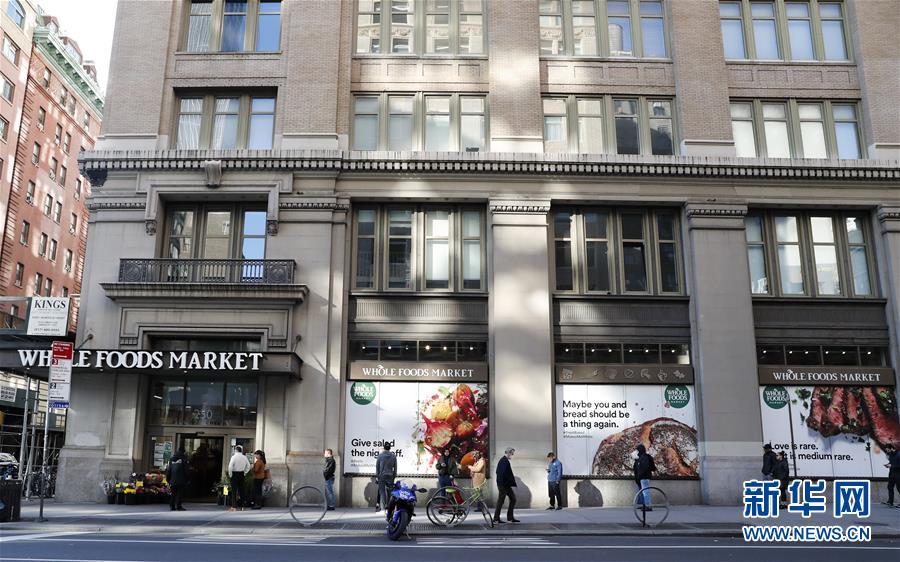 3月21日,在美國(guó)紐約,人們排隊(duì)時(shí)保持距離,準(zhǔn)備進(jìn)入一家超市購(gòu)物。美國(guó)紐約州、伊利諾伊州、康涅狄格州20日發(fā)布針對(duì)本州居民的“居家令”,以遏制新冠病毒傳播。這些“居家令”涵蓋紐約、洛杉磯、芝加哥等大城市,影響數(shù)千萬(wàn)人。白宮20日發(fā)表聲明說(shuō),總統(tǒng)特朗普已宣布紐約州出現(xiàn)“重大災(zāi)難”,命令聯(lián)邦政府支援該州抗擊新冠肺炎疫情。新華社記者王迎攝