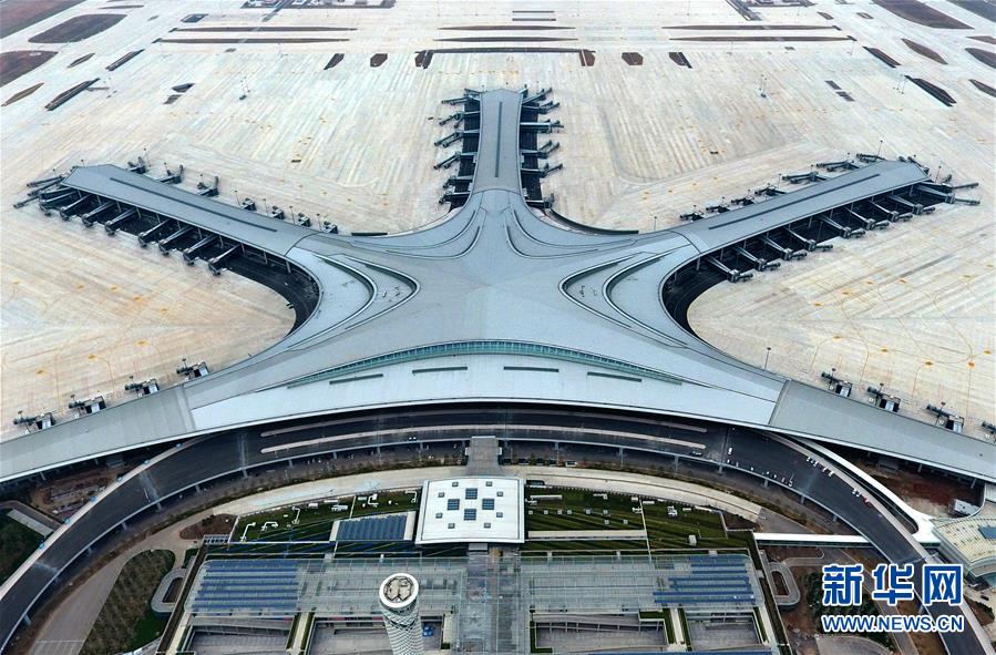 2019年6月12日無人機(jī)拍攝的建設(shè)中的青島膠東國(guó)際機(jī)場(chǎng)。新華社記者李紫恒攝