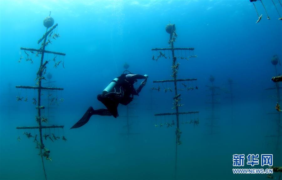 3月28日,在位于海南三亞蜈支洲島旅游區(qū)的海洋牧場,工作人員在進(jìn)行巡護記錄。近日,位于海南三亞蜈支洲島旅游區(qū)的海洋牧場復(fù)工,海底作業(yè)逐漸恢復(fù)正常,開始進(jìn)行人工魚礁吊裝擺位、水下監(jiān)控清理以及日常巡護等工作。據(jù)介紹,人工魚礁有利于魚類種類增加和數(shù)量提高,蜈支洲島海域海洋牧場人工魚礁表面附著珊瑚、貝類、藻類等生物種類達(dá)120余種。新華社記者楊冠宇攝