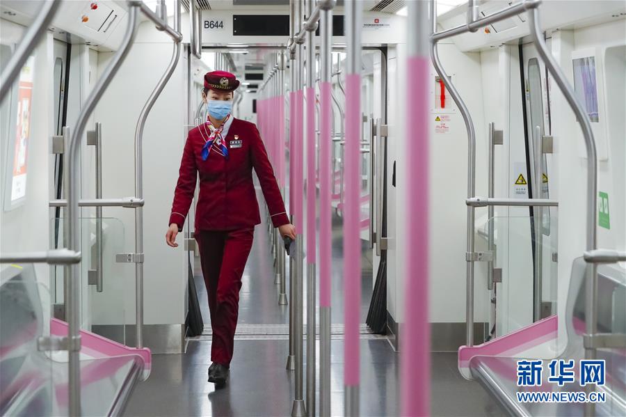 3月28日,武漢地鐵運營有限公司司機吳亞在常青車輛段巡視車輛內部情況。新華社記者沈伯韓攝