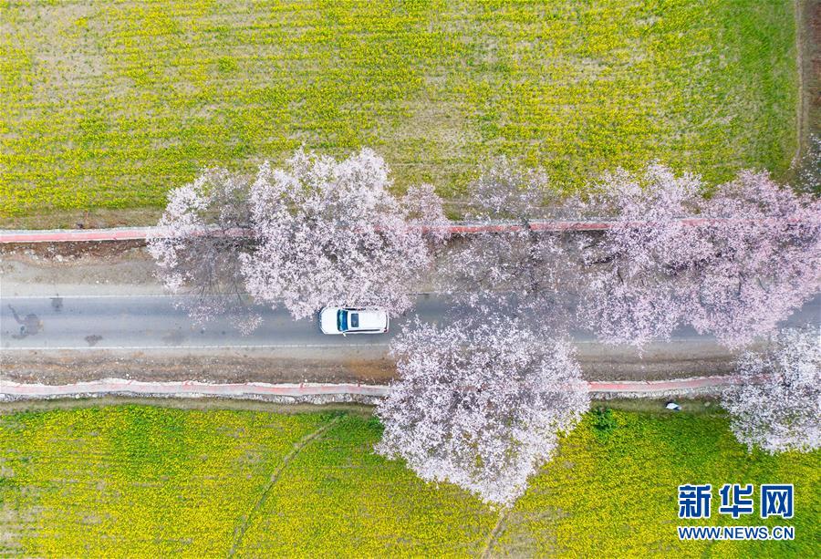 3月26日,西藏林芝境內(nèi)盛開的桃花(無人機照片)。新華社記者 孫非 攝