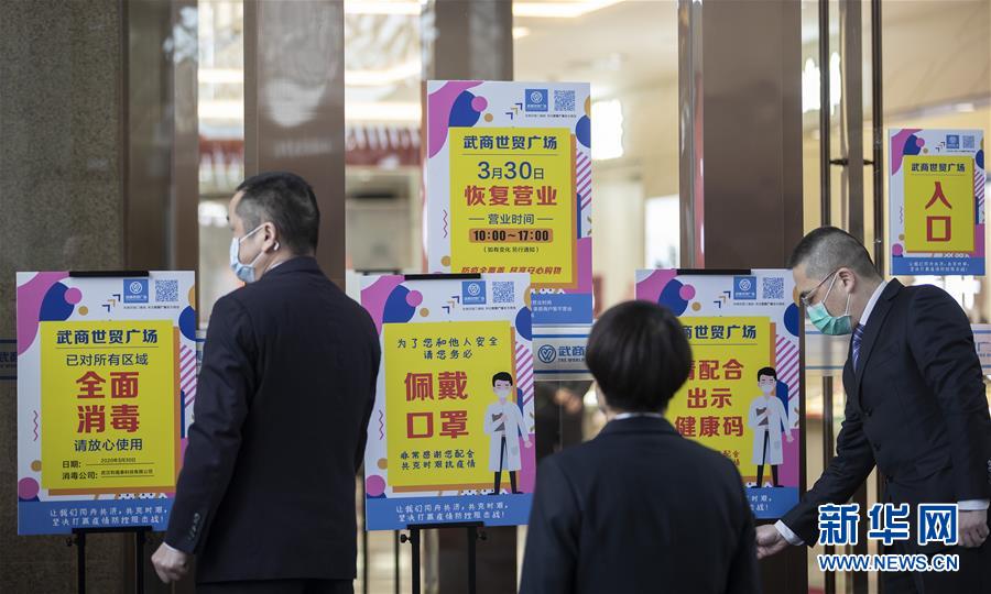 3月30日,顧客排隊進入武商國際廣場。當日,武漢市多家商場開門迎客。新華社記者費茂華攝