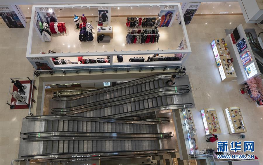 3月30日,在武商國際廣場,顧客乘坐滾梯。當日,武漢市多家商場開門迎客。新華社記者費茂華攝
