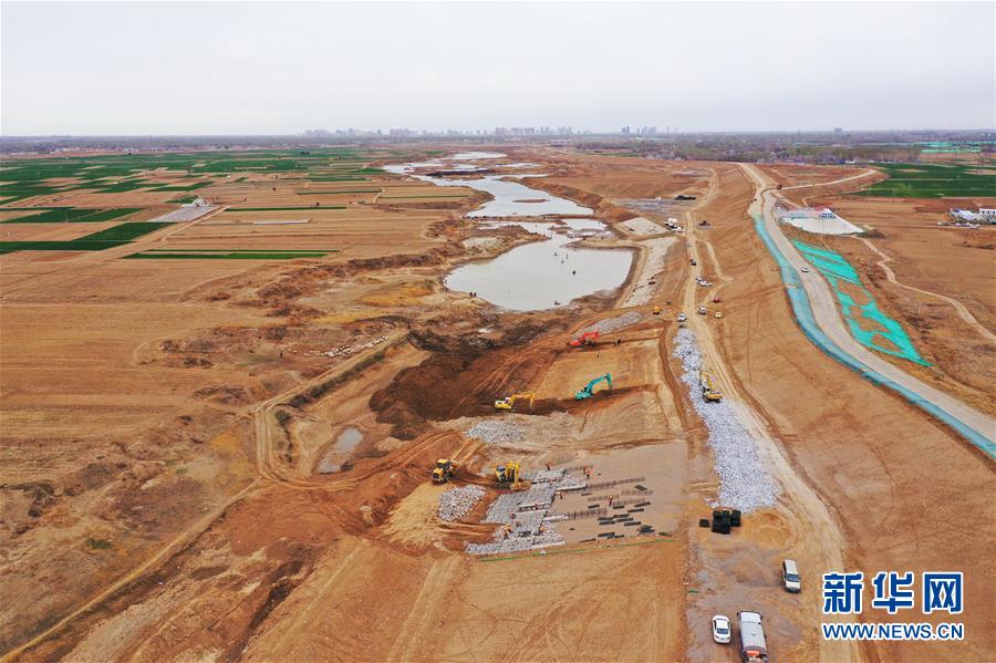 這是3月26日拍攝的雄安新區(qū)南拒馬河防洪治理工程(容城段)施工現(xiàn)場(chǎng)(無人機(jī)照片)。新華社記者楊世堯攝
