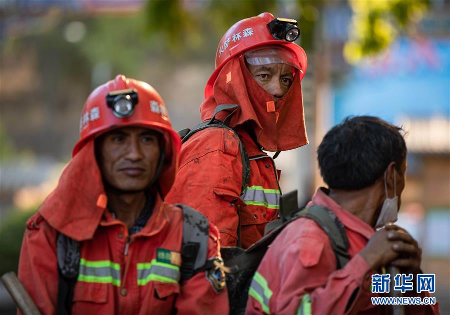 3月31日,幾名剛從火災(zāi)現(xiàn)場撤下來的撲火隊(duì)員在休整。新華社記者江宏景攝