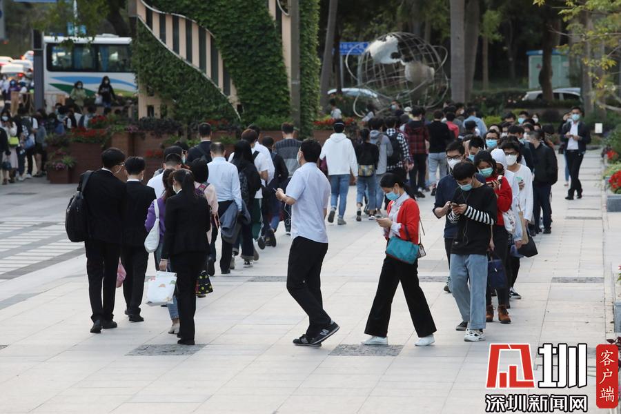 由于下班高峰客流量較大,“人龍”排到一旁的科技園文化廣場,形成“蛇餅”隊(duì)伍,秩序卻十分井然。