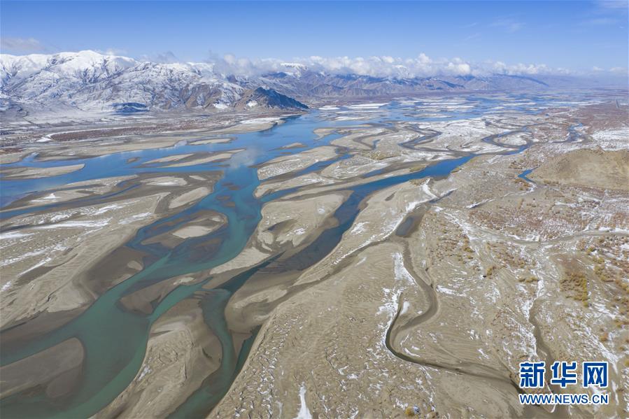 這是3月24日拍攝的雅魯藏布江雪景(無人機照片)。新華社記者普布扎西攝