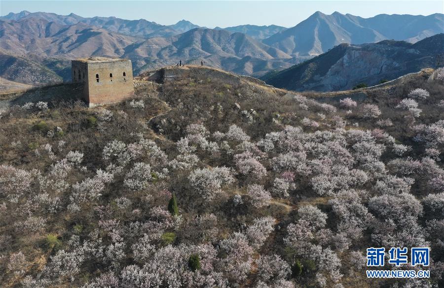 4月5日拍攝的遷安市大崔莊鎮(zhèn)長城景區(qū)景色(無人機(jī)照片)。新華社記者楊世堯攝